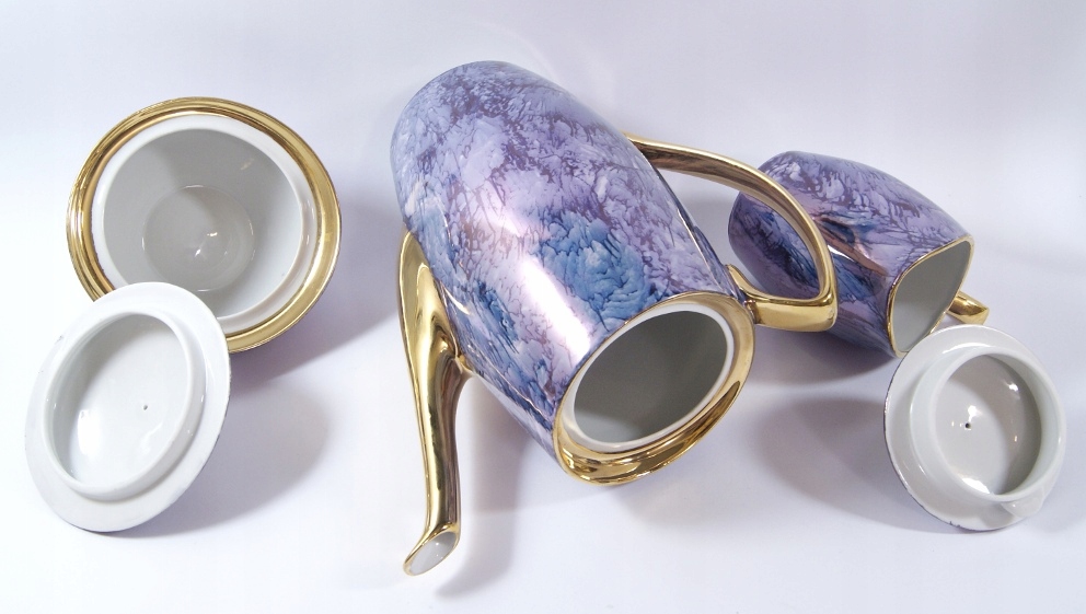 Объект аукциона- красивый, старый кувшин, кондитер и молоко, белый фарфор, украшенный мраморным рисунком и позолочкой. Chodzież, Project Józef сентябрь.