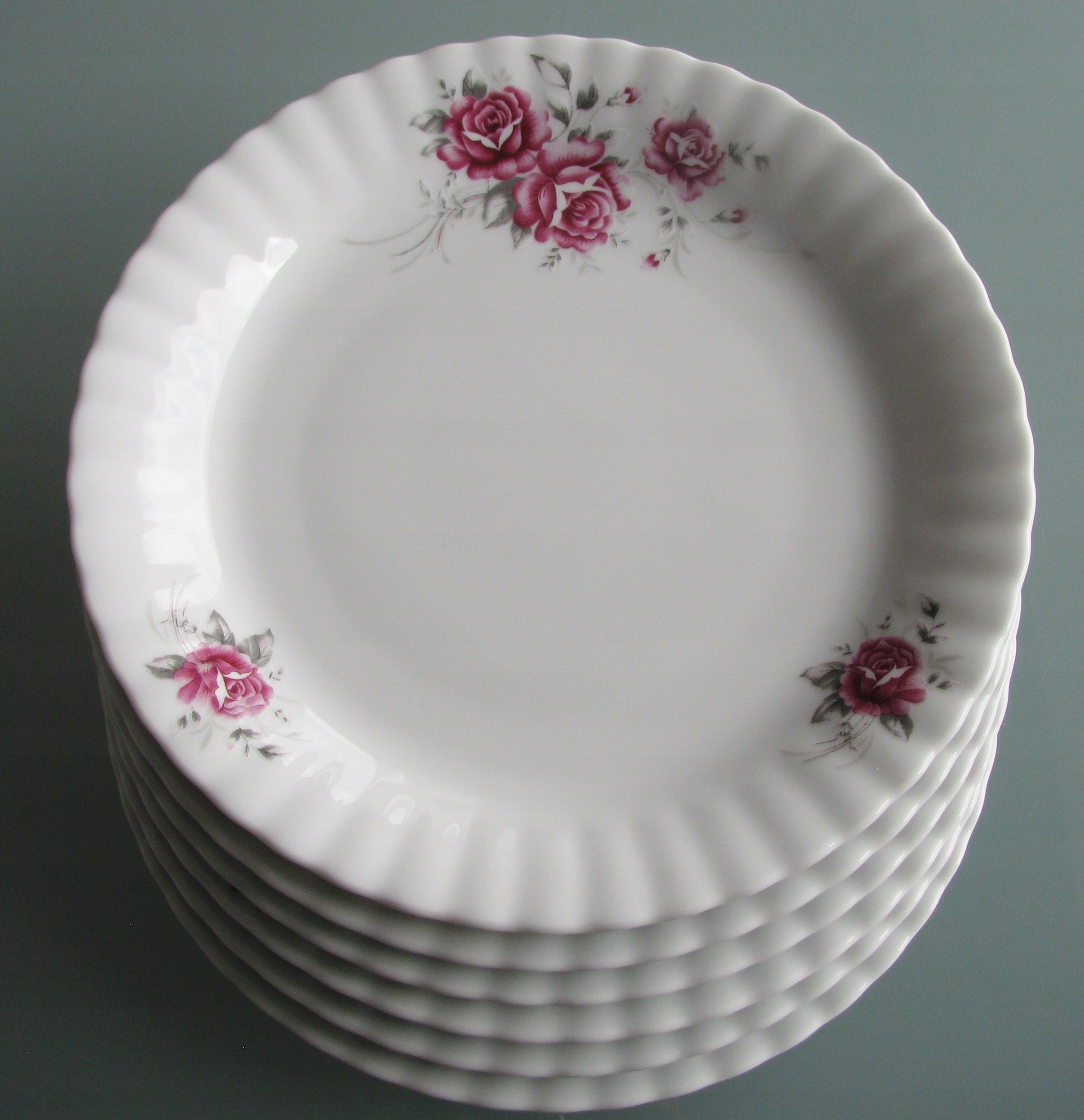 Iwona B444 фарфор Rozalia – вневременная красивая розовая роза line , на белом круглом фарфоре.