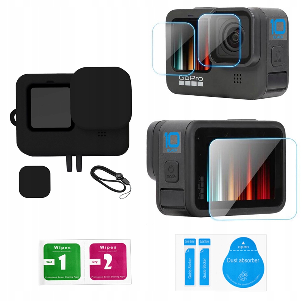 НАБОР из 3 закаленных стекол для GoPro Hero 9/10/11 + ЧЕХОЛ с крышкой объектива + шнурок