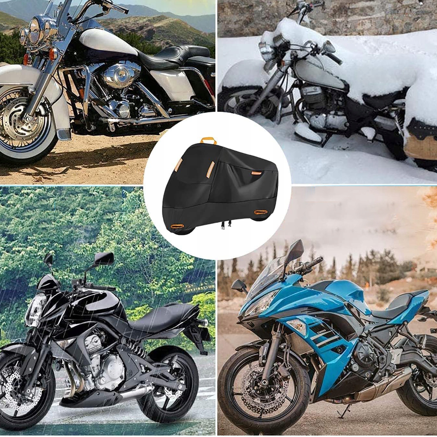 🏍️Универсальный размер: Размеры этого мотоциклетного чехла 220 x 105 x 125 см подходят для большинства мотоциклов, таких как Harley Davidson, Honda, Yamaha, Kawasaki, Suzuki и т. д. Пожалуйста, Перед покупкой измерьте мотоцикл, чтобы убедиться в правильности размеров.