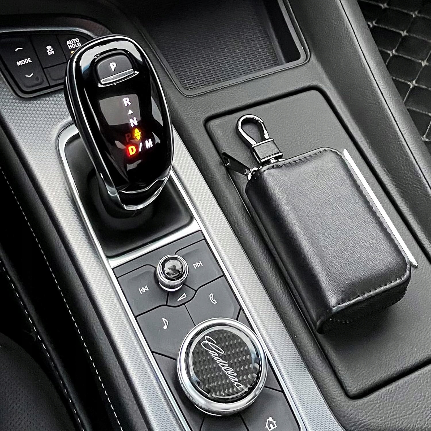 🗝️ Премиум-материал - Чехол для ключей Защитный чехол для ключа Он изготовлен из искусственной кожи премиум-класса и двухслойных защитных материалов, брелок для ключей из углеродного волокна изготовлен вручную с хорошо сплетенной строчкой и прочной матовой черной застежкой-молнией/брелоком, который может обеспечить полную блокировку сигнала. Выглядит более элегантно и роскошно, высококлассно.