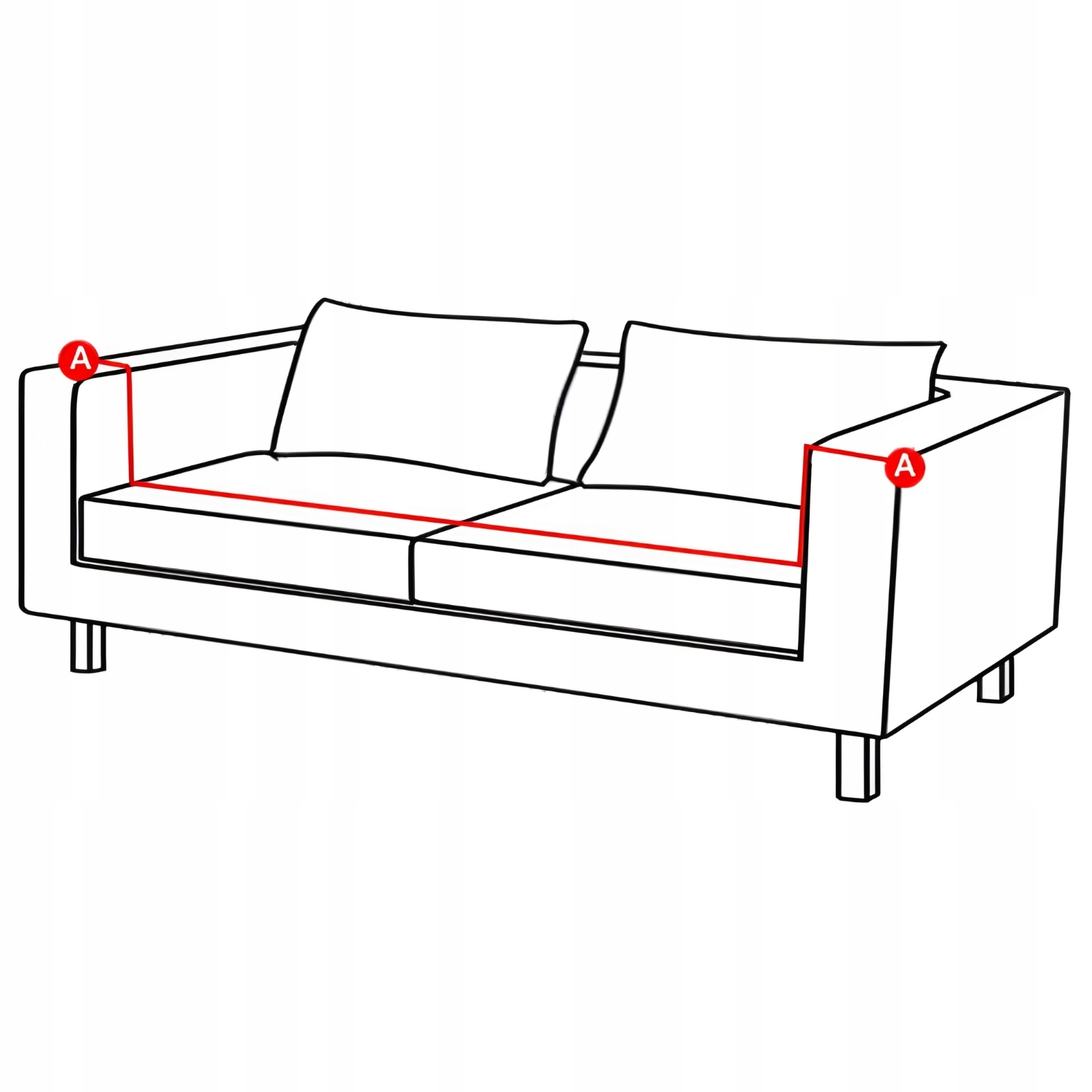 Чтобы измерить диван, начните с размещения измерительной ленты на одном конце дивана (точка А). Проведите рулетку вдоль переднего края сиденья до другого конца дивана (вторая точка А). Убедитесь, что рулетка плотно прилегает к дивану. Чехол на трехместный диван должен подходить к диванам длиной от 190 до 230 см.