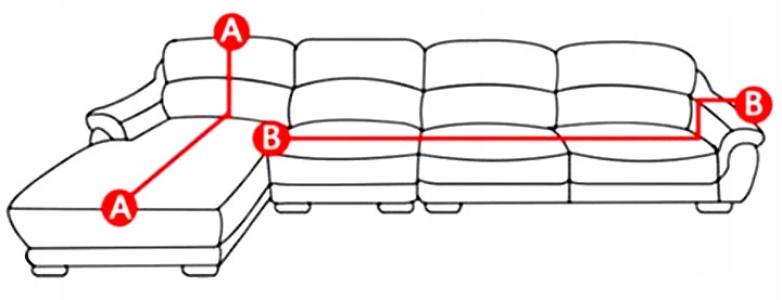 Аукцион проводится только для одной обложки. На каждый угловой диван понадобится по два чехла, на каждую часть. Измерьте две половинки углового дивана по схеме ниже и выберите два чехла, соответствующие полученным размерам.