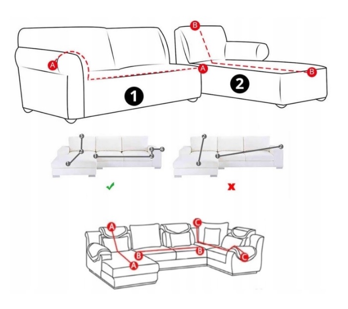 При выборе чехла, пожалуйста, тщательно измерьте диван по схеме, представленной на фото