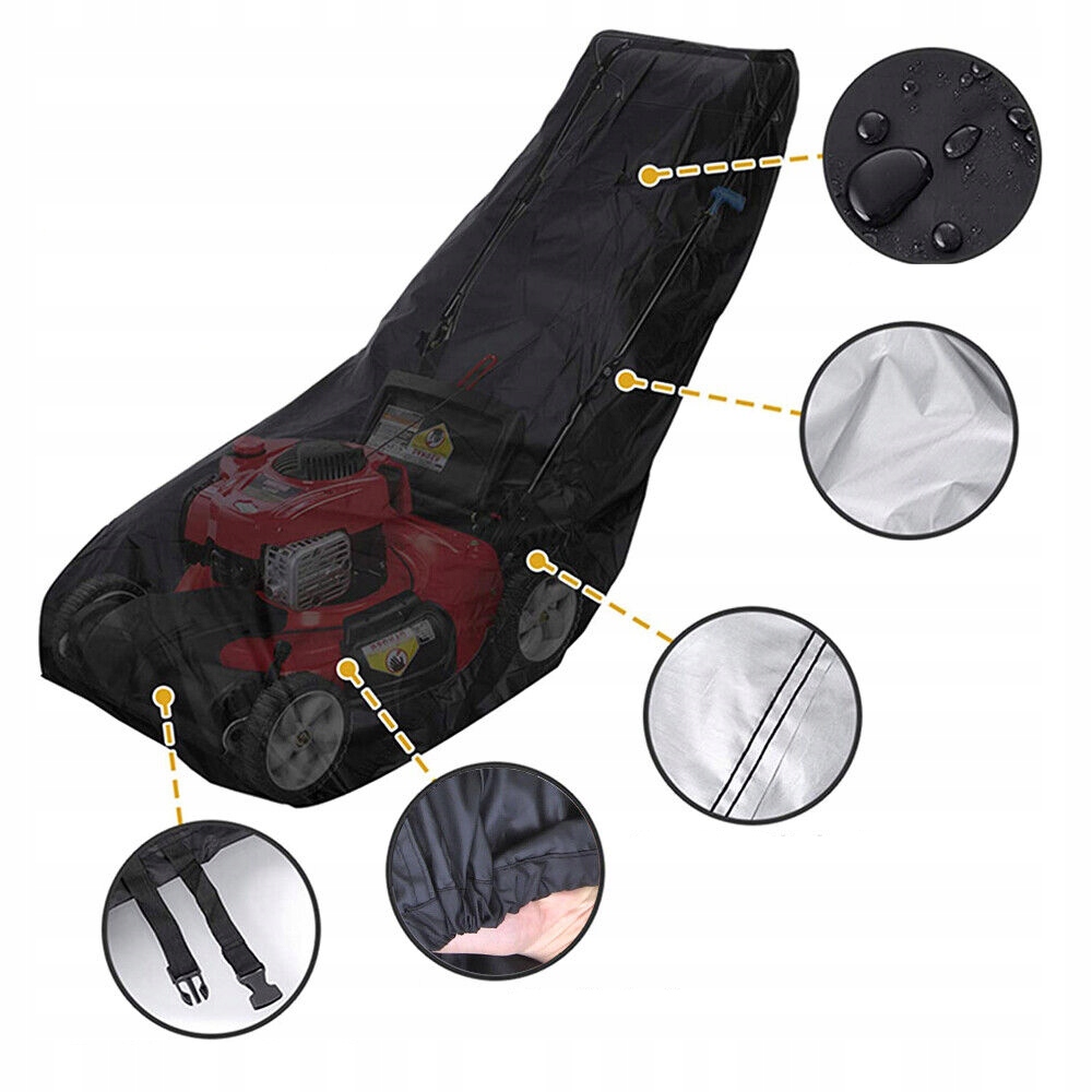 Низ чехла имеет ветрозащитные пряжки и шнуровую затяжку шнура, препятствующую сдуванию чехла газонокосилки ветром. Кроме того, внутренняя крышка этой бензиновой газонокосилки имеет серебряное УФ-покрытие, она может эффективно защитить вашу газонокосилку от солнечного света и идеально подходит для использования на открытом воздухе.