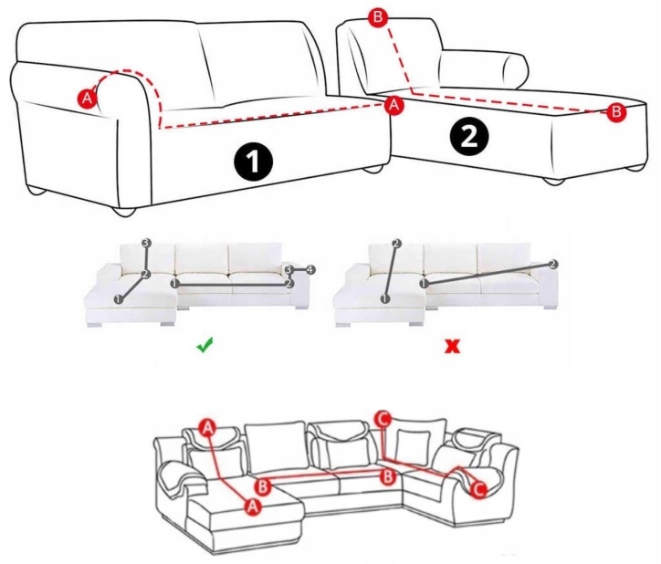 При выборе чехла, пожалуйста, тщательно измерьте диван по схеме, представленной на фото.