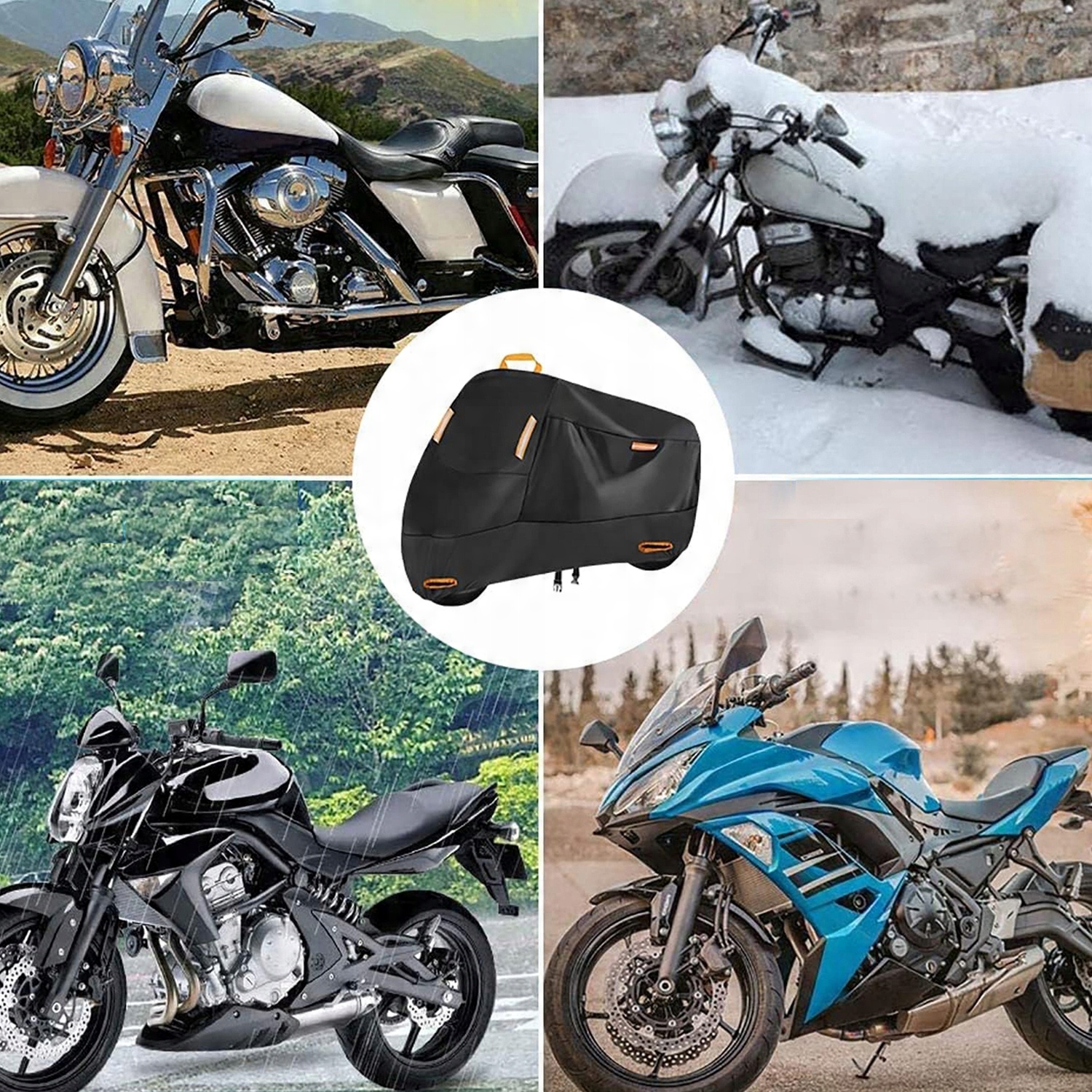 - 🔻【ВОДОНЕПРОНИЦАЕМОСТЬ 300D】Этот чехол для мотоцикла, изготовленный из высококачественного нейлона Oxford 300D, толще и более водонепроницаем, чем материал 210D, представленный на рынке. Выдерживает давление воды до 2000 мм и защищает мотоцикл от дождя, пыли и плохих погодных условий.