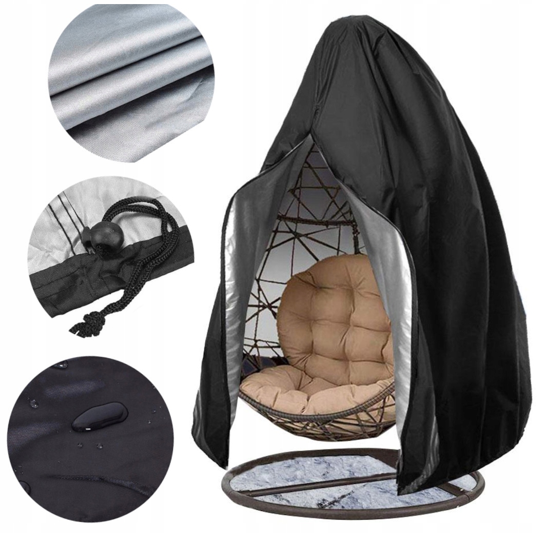 Чехол эффективно защитит подвесное кресло от вредного воздействия погодных условий. Он изготовлен из очень прочного, но мягкого полиэстера. Устойчив к вредным погодным условиям, ультрафиолетовым лучам, водонепроницаем. Шнурок и молния облегчают надевание и обеспечивают еще большую защиту корзины и подушки.