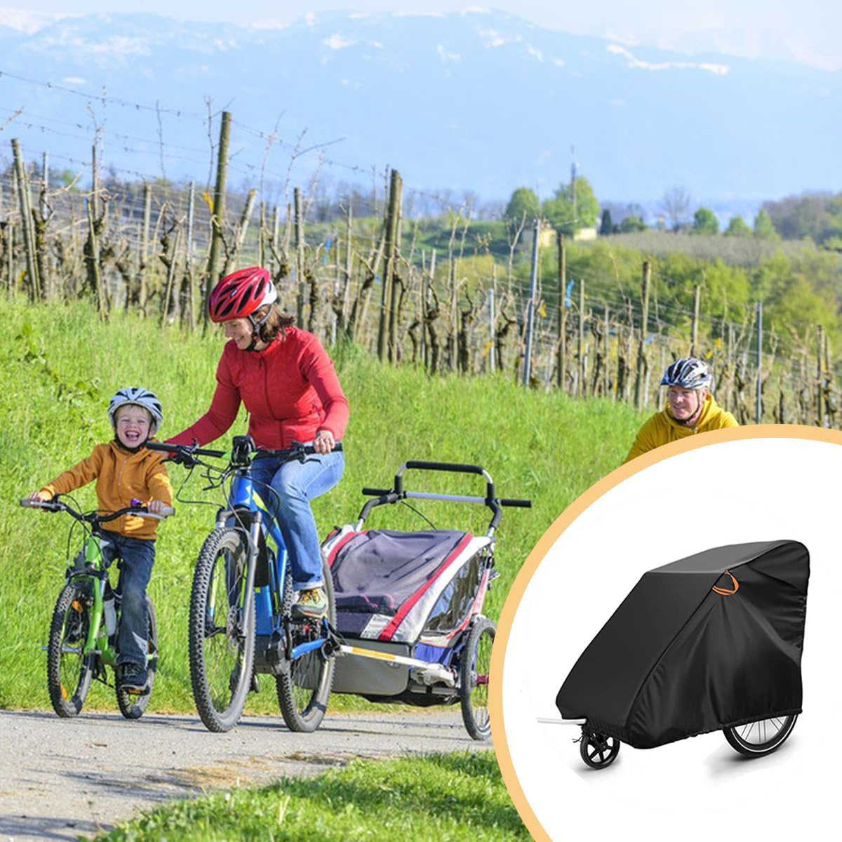 💦【Комплексная защита вашего велосипедного прицепа】Чехол для велосипедного прицепа подходит для всего велосипедного прицепа, отлично защищает ваш ценный прицеп от выцветания под воздействием погодных условий, хорошо защищает ваш велосипед от царапин. Не обязательно во время путешествий, поэтому в сарае он остается чистым.