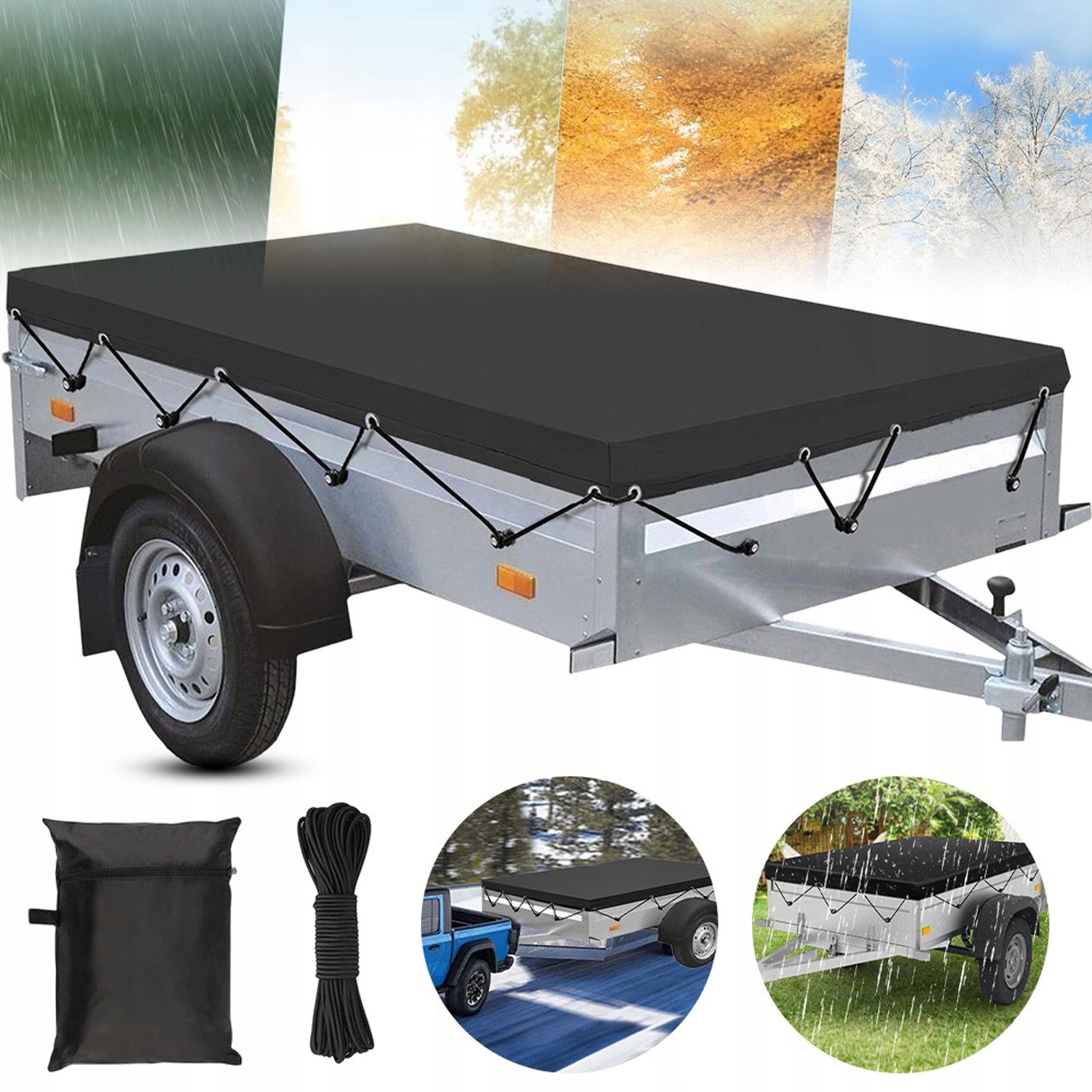 🌠- Оснащенный сверхпрочной системой ремней, он надежно крепится вокруг рамы прицепа и не ослабевает и не упадет даже при движении на высоких скоростях или при сильном ветре.