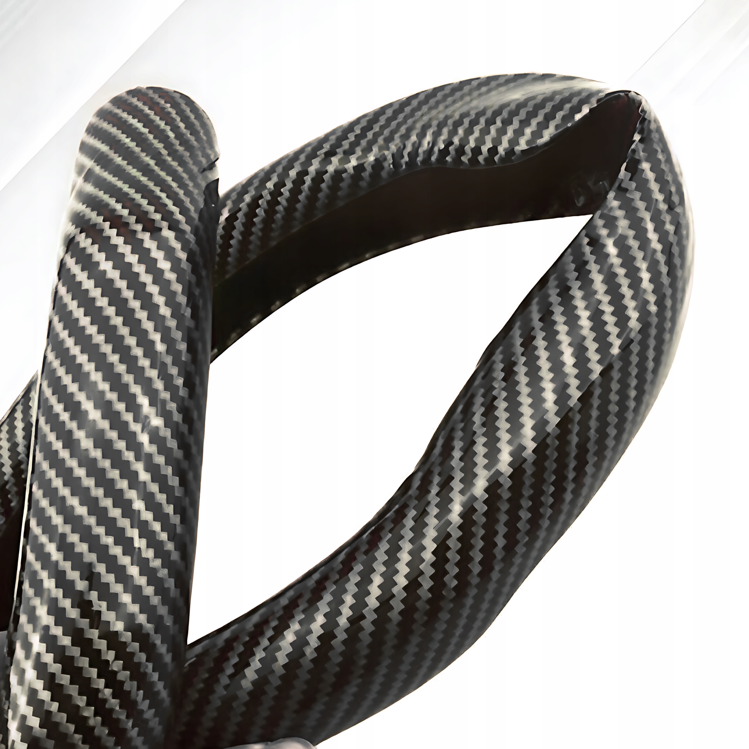 Наш чехол представляет собой улучшенную версию уже популярных двухкомпонентных чехлов на руль в карбоновом стиле.