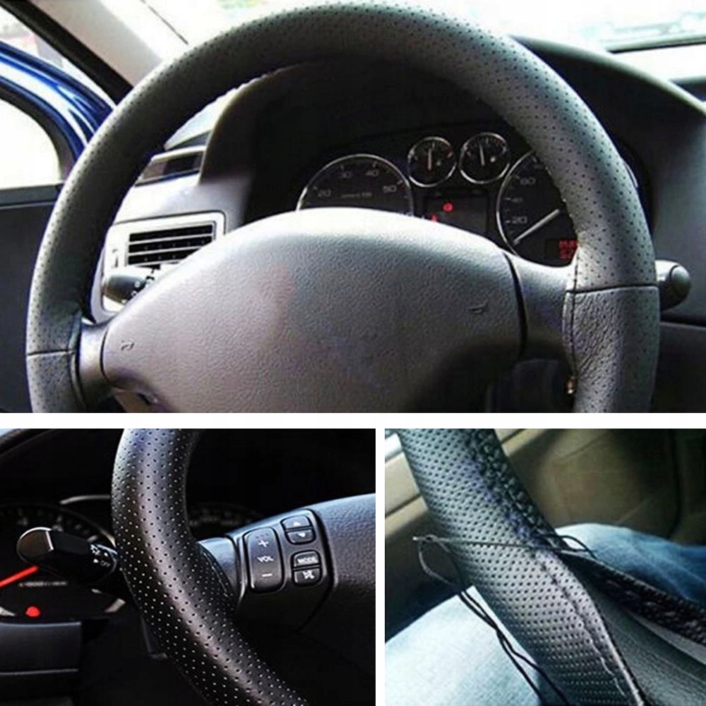 ⭐ЧЕХОЛ РУЛЯ ПЕРФОРИРОВАННЫЙ, ЧЕРНЫЙ + ИГЛА, НИТЬ, ТКАНЬ