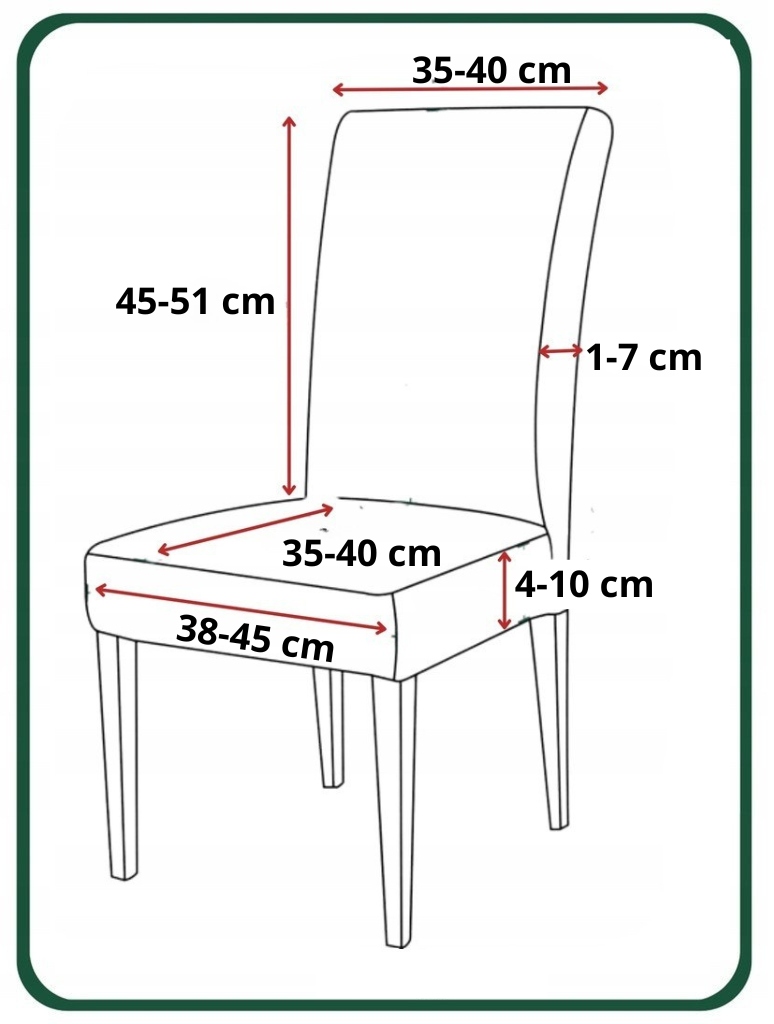На рисунке ниже показаны размеры стульев, на которые подходит наш чехол. Если ваш стул на +- 2 см больше/меньше - наш чехол все равно подойдет!