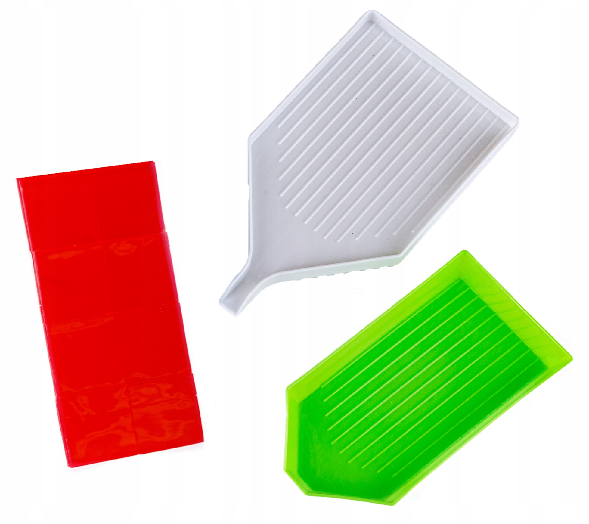 Кюветы (зеленые и белые) разных размеров облегчают разделение бриллиантов и их захват. Лотки позволяют одновременно разместить большее количество разных бриллиантов.