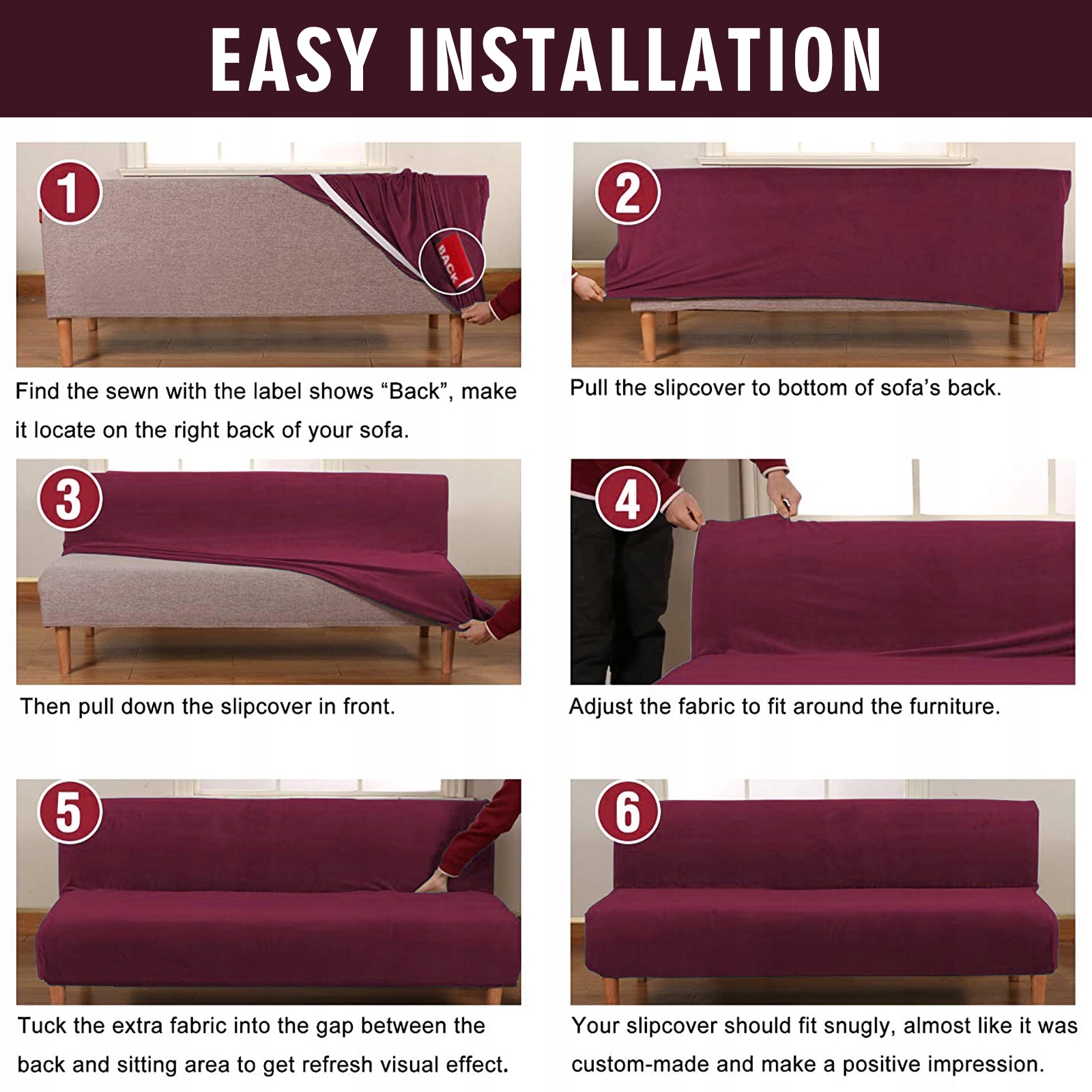 【Идеально подходит】 Цельный чехол для дивана без подлокотников достаточно гибкий, чтобы соответствовать большинству раскладных диванов. без подлокотников. Подходит только для диванов без подлокотников/диванов-кроватей, НЕ подходит для диванов с подлокотниками. Перед заказом проверьте стиль и измерьте размер вашего дивана.