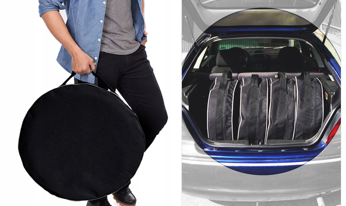 Ниже мы представляем чехлы для шин/колес в версии «СТАНДАРТ», изготовленные из прочного, водонепроницаемого материала с ПВХ-покрытием, называемого кодура. Чехлы разрабатываются и производятся компанией LASOTA в соответствии с размером шин, указанным клиентом. Для изготовления чехлов были использованы материалы высочайшего качества, такие как: кожаные нити, петля-молния 0,5 см, кожаный ремешок и ремень для переноски толщиной 40 мм вокруг чехла, с грузоподъемностью в несколько сотен килограммов, поэтому можно безопасно возите не только покрышки, но и покрышки в чехлах, а также покрышки на дисках. Чехлы нашей компании облегчают переноску, транспортировку и эстетичное хранение шин и колес в целом на долгие годы. Дополнительно на каждом чехле имеется карман с вышитой маркировкой шины (ПТ – правая задняя и т.д.).