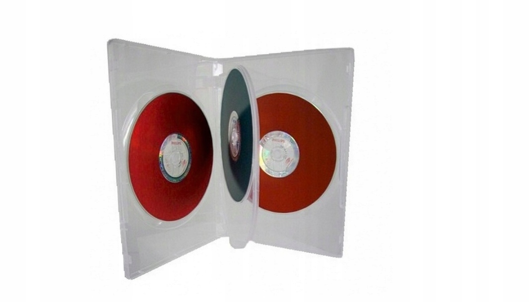 Коробка для трех DVD-дисков из черного гибкого пластика толщиной 14 мм.