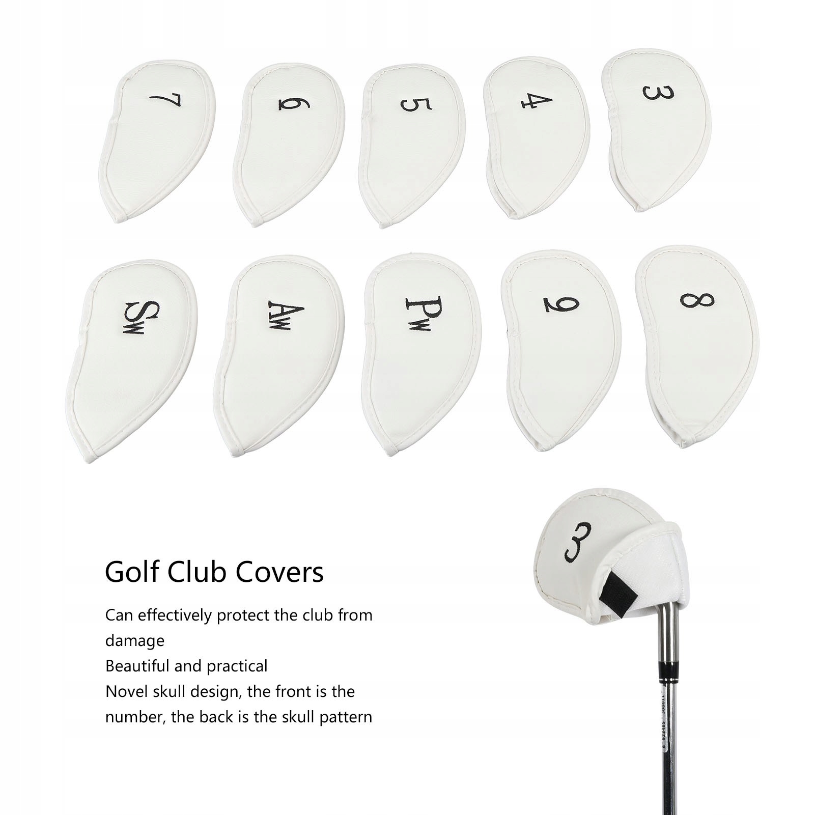 3. Уникальный дизайн: чехлы для клюшек из полиуретана с новым рисунком черепа имеют цифры спереди и рисунок черепа сзади.