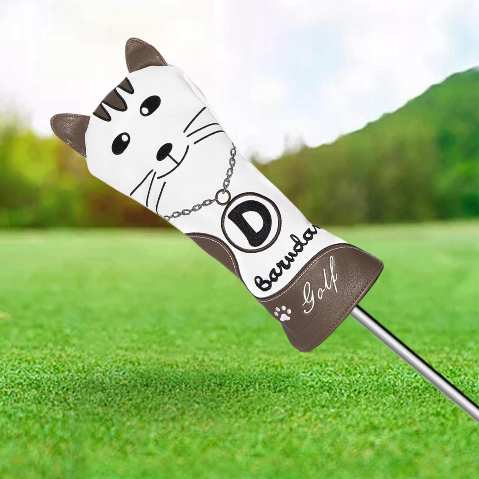 Cartoon Cat Golf Gold Headcovers, плюшевая подкладка с белым номером кофе l