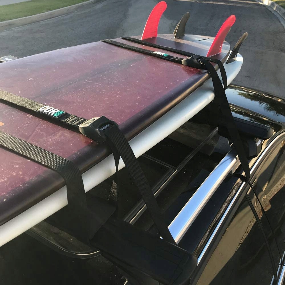 Полоски изготовлены из гладкого нейлона толщиной 1,5 мм, что гарантирует, что ваши доски не поцарапаются, не жертвуя при этом прочностью. Увеличенное отделение из нержавеющей стали предназначено для легкого доступа для больших и мизинцев, и мы обертываем его силиконовым чехлом, чтобы на краске автомобиля не образовывались вмятины.