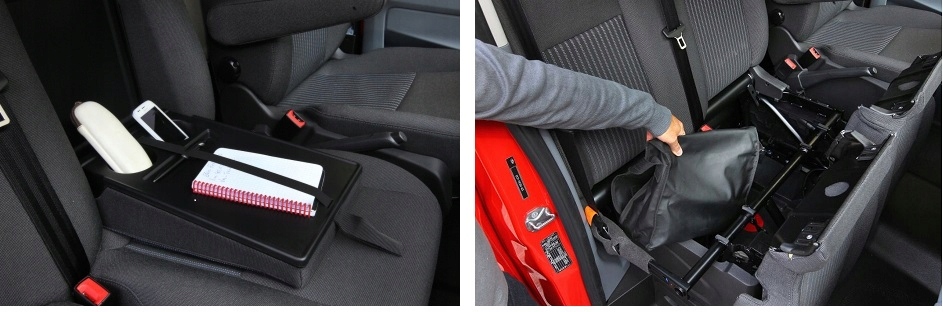 В случае с нашими чехлами функциональность сидений будет сохранена, т.е. вы сможете открыть полку, расположенную на спинке двойной скамейки (фото ниже), а также открыть отсеки для хранения вещей в сиденье.