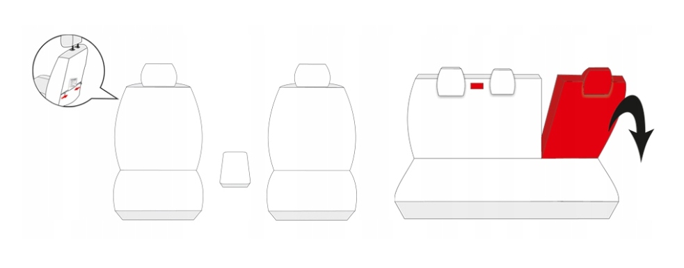 В зависимости от модели автомобиля в комплект входят чехлы на такие элементы, как передний или задний подлокотник, молнии, позволяющие использовать столики, и карманы в спинках передних сидений, чехлы на складные подголовники, боковые чехлы на колесные арки ( столбцы).