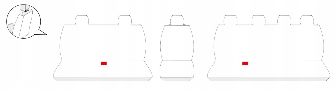 В зависимости от модели автомобиля в комплект входят чехлы на такие элементы, как передний или задний подлокотник, молнии, позволяющие использовать столики и карманы в спинках передних сидений, чехлы на складные подголовники, боковые чехлы на колесные арки (колонны).