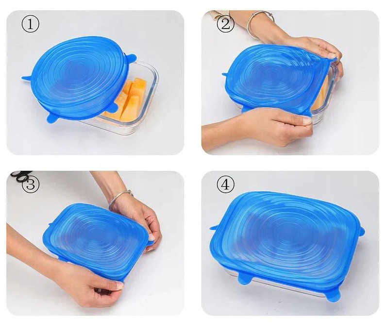 - ✔️ Использование силиконовых крышек гарантирует, что ваша еда будет свежей, а она не испортятся и фрукты и овощи не засохнут.