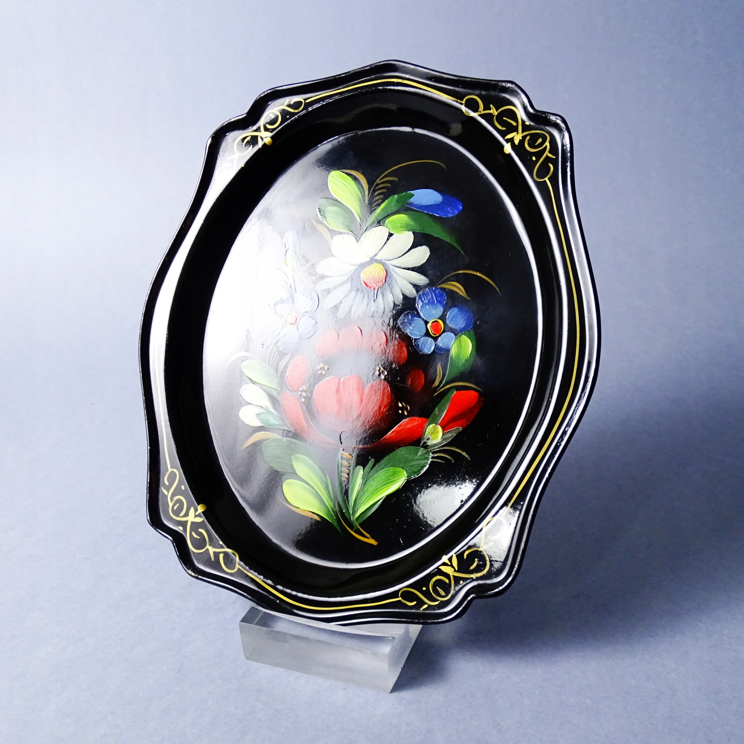 ЧОХЛОМА ХОХЛОМА КРАСИВЫЙ МЕТАЛЛИЧЕСКИЙ ПОДНОС С РАСКРАШЕННЫМ УЗОРОМ СССР РОССИЯ