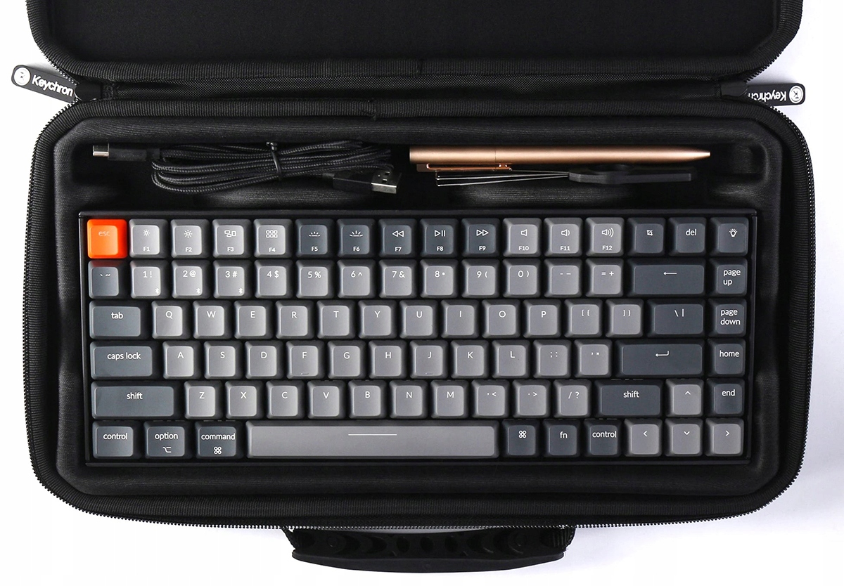 Мягкая и высококачественная внутренняя часть футляра для переноски клавиатуры защищает клавиатуру Keychron. Благодаря уникальному дизайну чехол позволяет разместить вместе с клавиатурой кабель, ключницу или другие мелкие предметы.