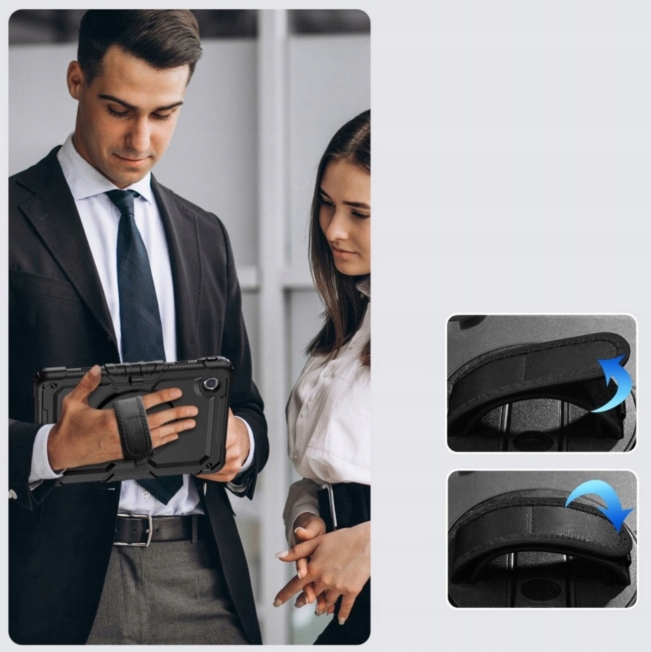 Кейс сделан очень прочно для людей, которые ценят идеальную защиту, сохраняя при этом превосходный внешний вид. Наш планшет защищен на 100%. Вам не придется беспокоиться о царапинах или механических повреждениях корпуса, поскольку корпус выполнен из мягкого, поглощающего падения материала ТПУ и устойчивого к царапинам поликарбоната. Чехол имеет ручку для комфортной работы, письма, чтения или игр, а также безопасного ношения планшета благодаря специальному ремешку, который также входит в комплект. Чехол также имеет функцию подставки, которая делает работу на планшете очень удобной. Передняя часть защищена стеклом, а места, подверженные воздействию воды, пыли и песка, защищены уплотнителями.