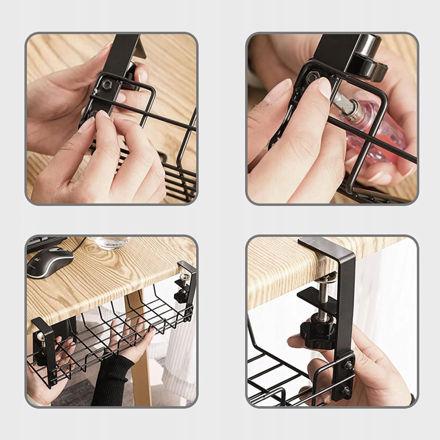 ✅【БЕЗ ПРОБИВКИ】 Нет необходимости сверлить винты или другое оборудование в столе. Поворачивая черный зажим вверх и вниз, его можно повесить прямо на раму стола размером от 1,2 см до 4 см.