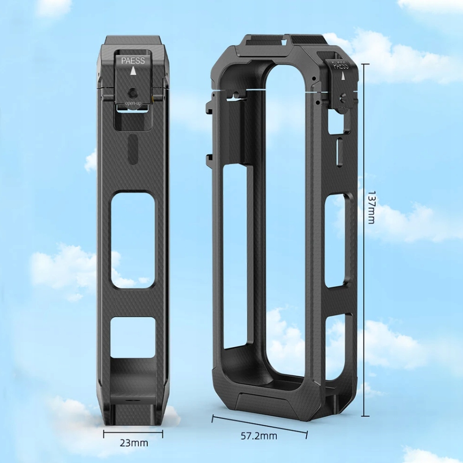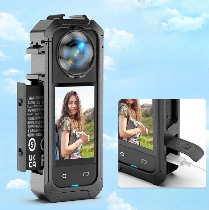 Дизайн рамы оптимизирован для захвата изображений на 360°. Он не мешает работе камеры и не закрывает объективы, поэтому панорамные снимки остаются четкими и беспрепятственными. Кроме того, открытая конструкция обеспечивает удобный доступ ко всем портам, кнопкам, карте памяти и аккумулятору без необходимости разборки.