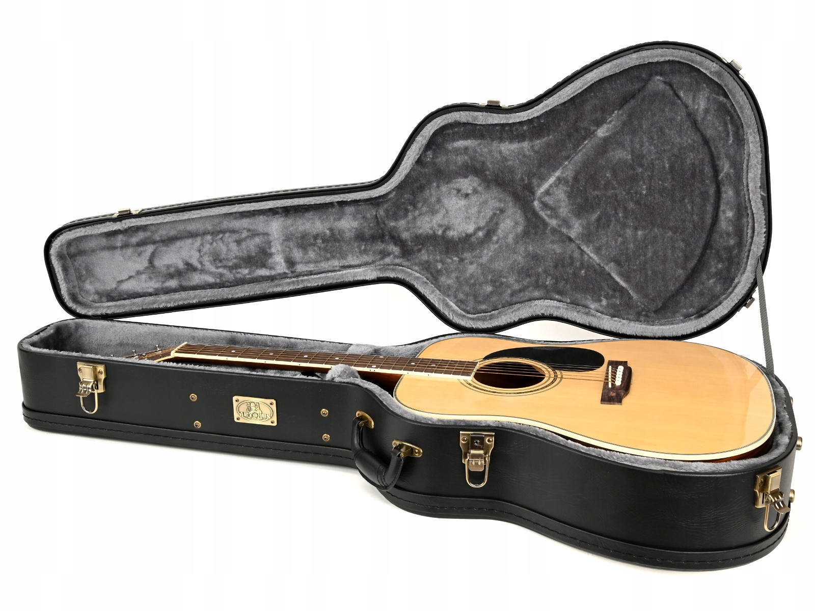 Качественный футляр, предназначенный для 6- и 12-струнной акустической гитары дредноут, также известной как вестерн-гитара.
