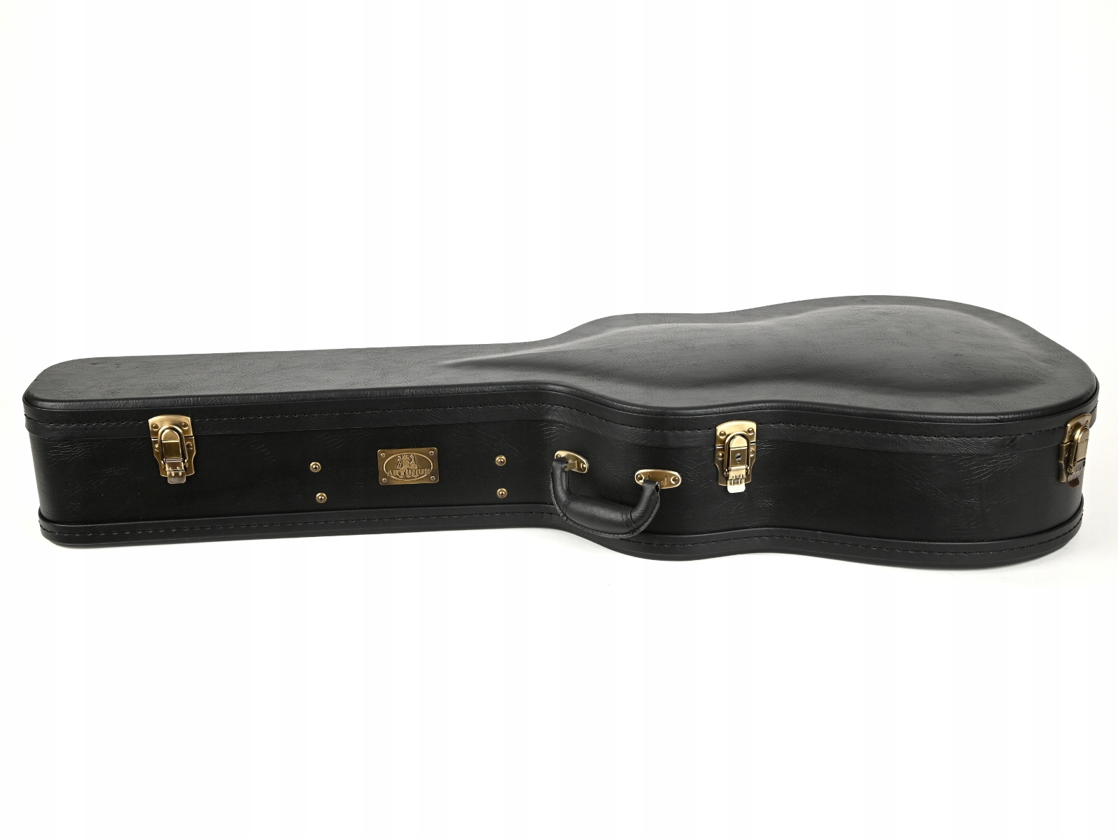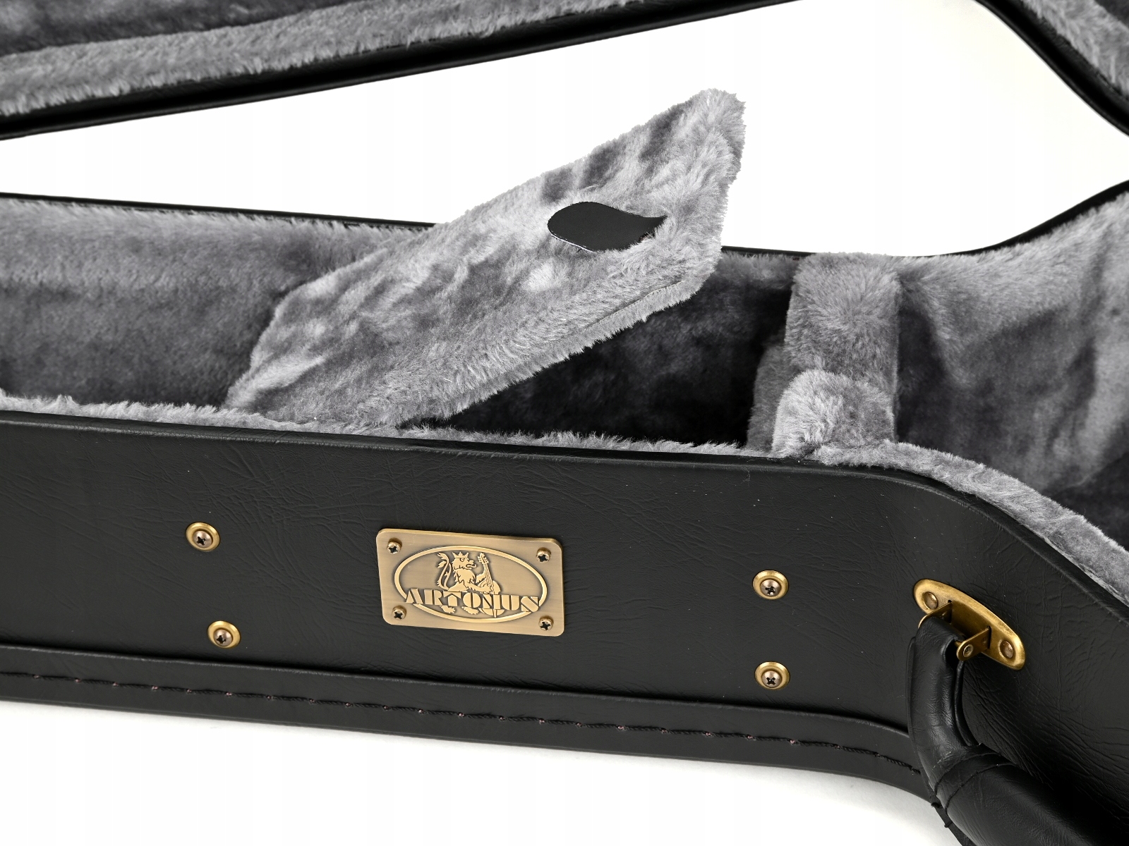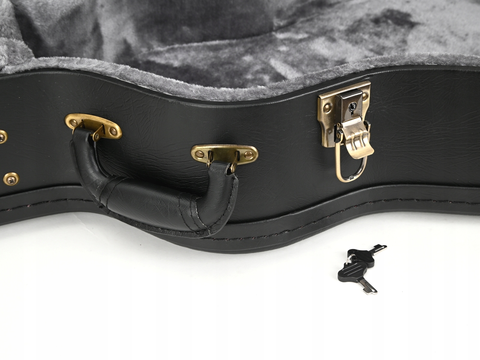 Кейс гитары снаружи покрыт искусственной кожей. Внутри на подкладке из губки и толстого плюша. Это создает отличную теплоизоляцию и амортизацию инструмента. Этот чехол для гитары в настоящее время выпускается в шести цветах. Чемодан оснащен кожаной ручкой в форме банана и четырьмя замками, один из которых имеет ключ. Внутри имеется отсек для хранения аксессуаров. Производство Китай.