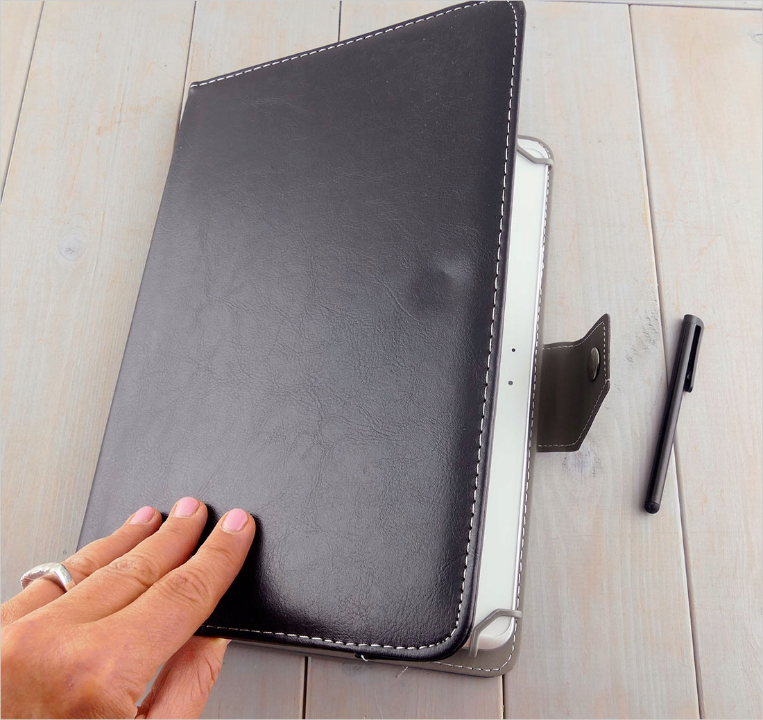 Угловые крючки, хотя и выглядят филигранно, чрезвычайно прочны и очень хорошо удерживают планшет в чехле.