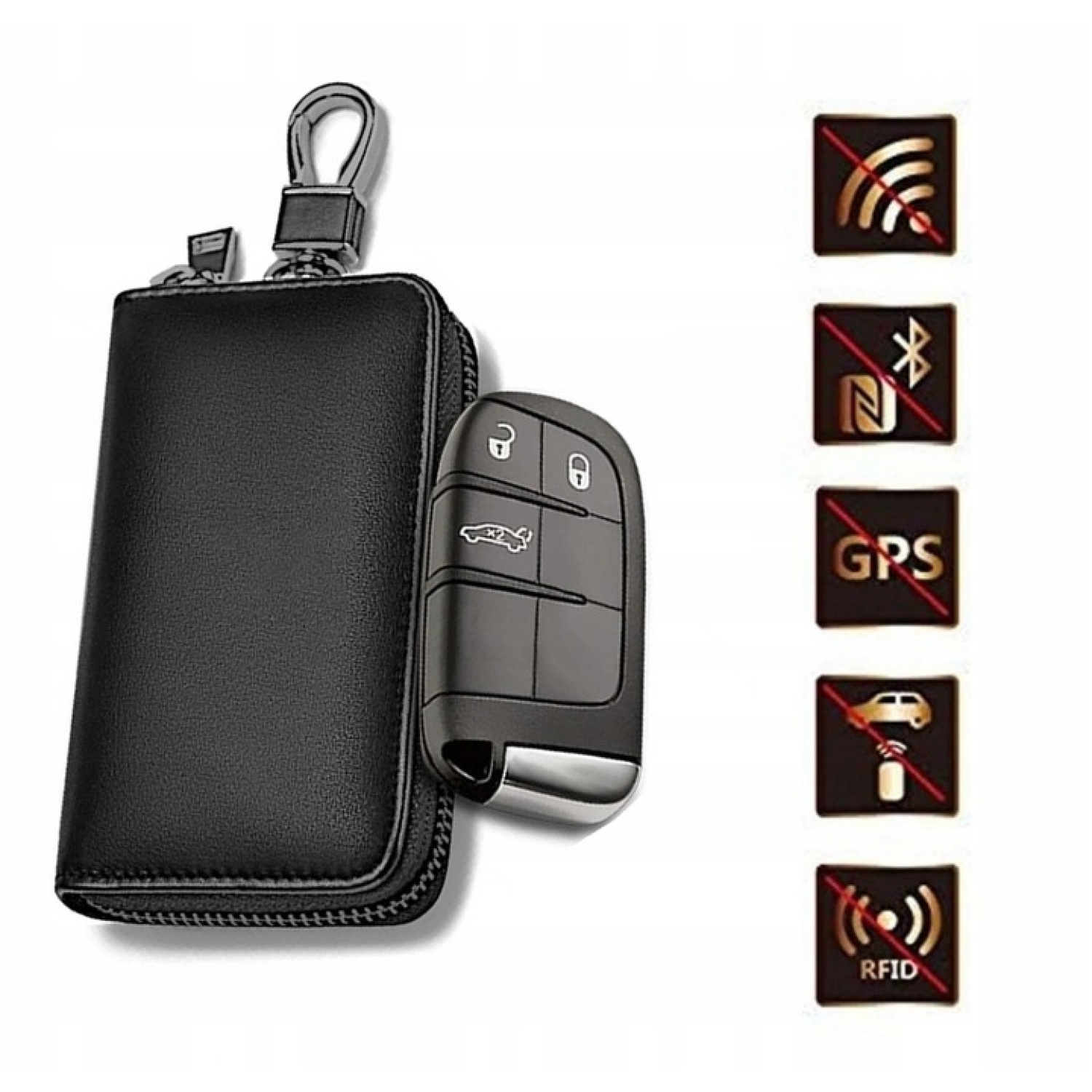 🚫 Полностью блокирует все радиосигналы от ключа, предотвращая отверстие или запуск автомобиля после закрытия в груди.