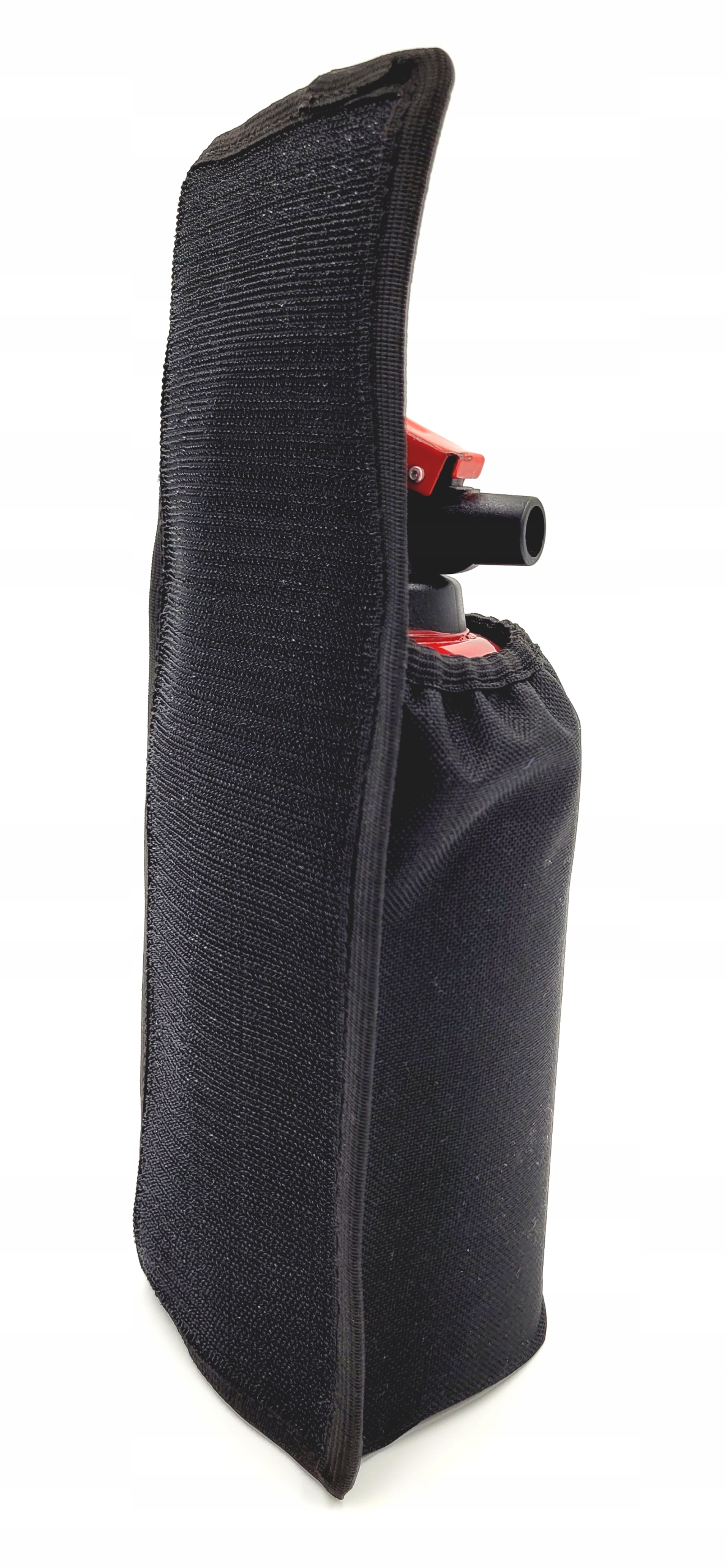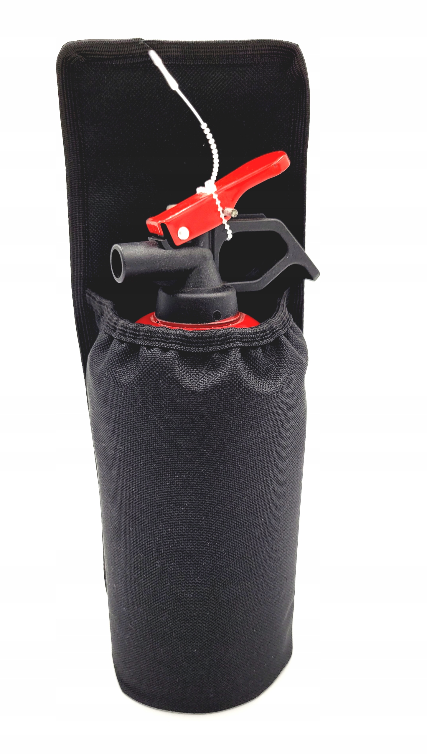 Чехол для автомобильного огнетушителя 1 кг. Чехол изготовлен из устойчивого к истиранию и легко чистящегося материала Codura, достаточно протереть его влажной тряпкой. Чехол имеет сзади широкую липучку, поэтому его можно прикрепить, например, к боковой части багажника. Это предотвратит перемещение огнетушителя по багажнику. Перед покупкой стоит проверить, прилипает ли липучка к обивке. Огнетушитель в комплект не входит, продается только чехол.