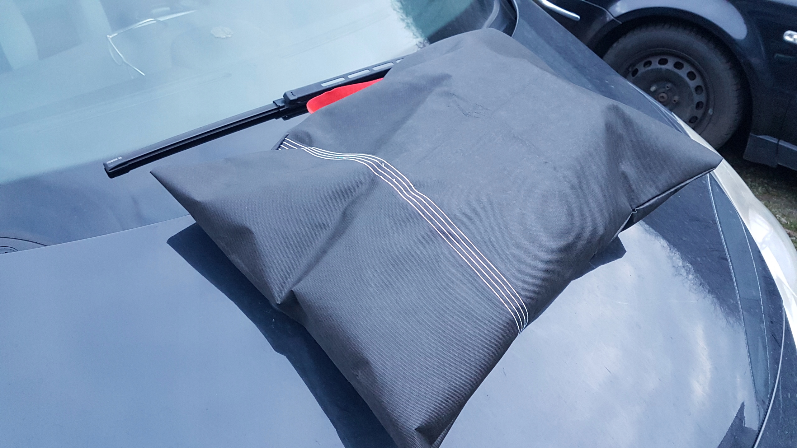 -благодаря прочным резинкам он сразу держится на машине и не взлетает при надевании