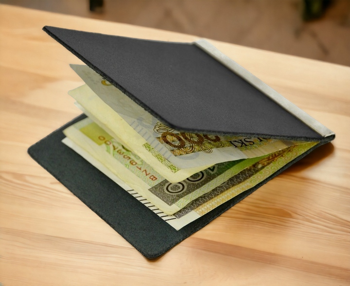 ✅ Имеет одинарный язычок, оснащенный металлической пряжкой/крючком, позволяющий безопасно хранить банкноты.