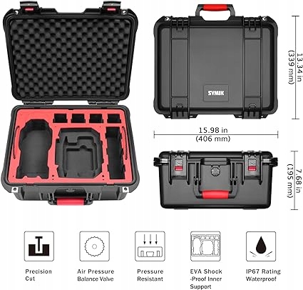 Жесткий чехол SYMIK для DJI Air 3 изготовлен из прецизионного полипропиленового сплава, который очень износостойкий, устойчивый к давлению, устойчивый к падению, устойчивый к сжатию, IP67 водонепроницаемый, пыленепроницаемый и ударопрочный. Предварительно вырезанная вставка из пенопласта обладает высокой эластичностью и высокой ударопрочностью, эффективно защищая дрон DJI AIR 3, контроллер RC2 и пропеллеры от внешних воздействий.