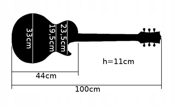 Внешние размеры футляра для электрогитары Les Paul: 105,5 см х 39,5 см х 14,5 см.