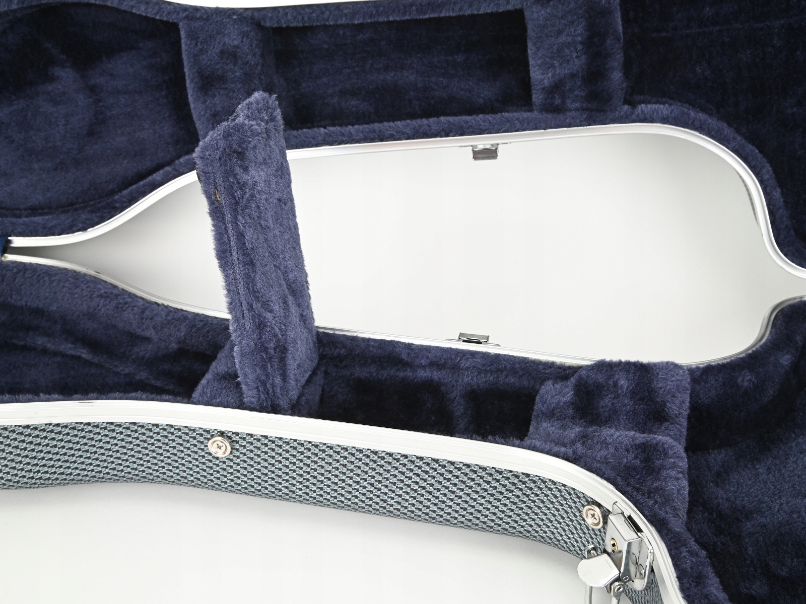 Закрывается на шесть замков, один из которых имеет ключ. Внутри имеется отсек для хранения аксессуаров. Внешняя оболочка имеет текстуру кожи или сетки. Внутри чехол оббит губкой и толстым плюшем. Это создает отличную теплоизоляцию и амортизацию инструмента. Кейс для гитары доступен в двух цветах.