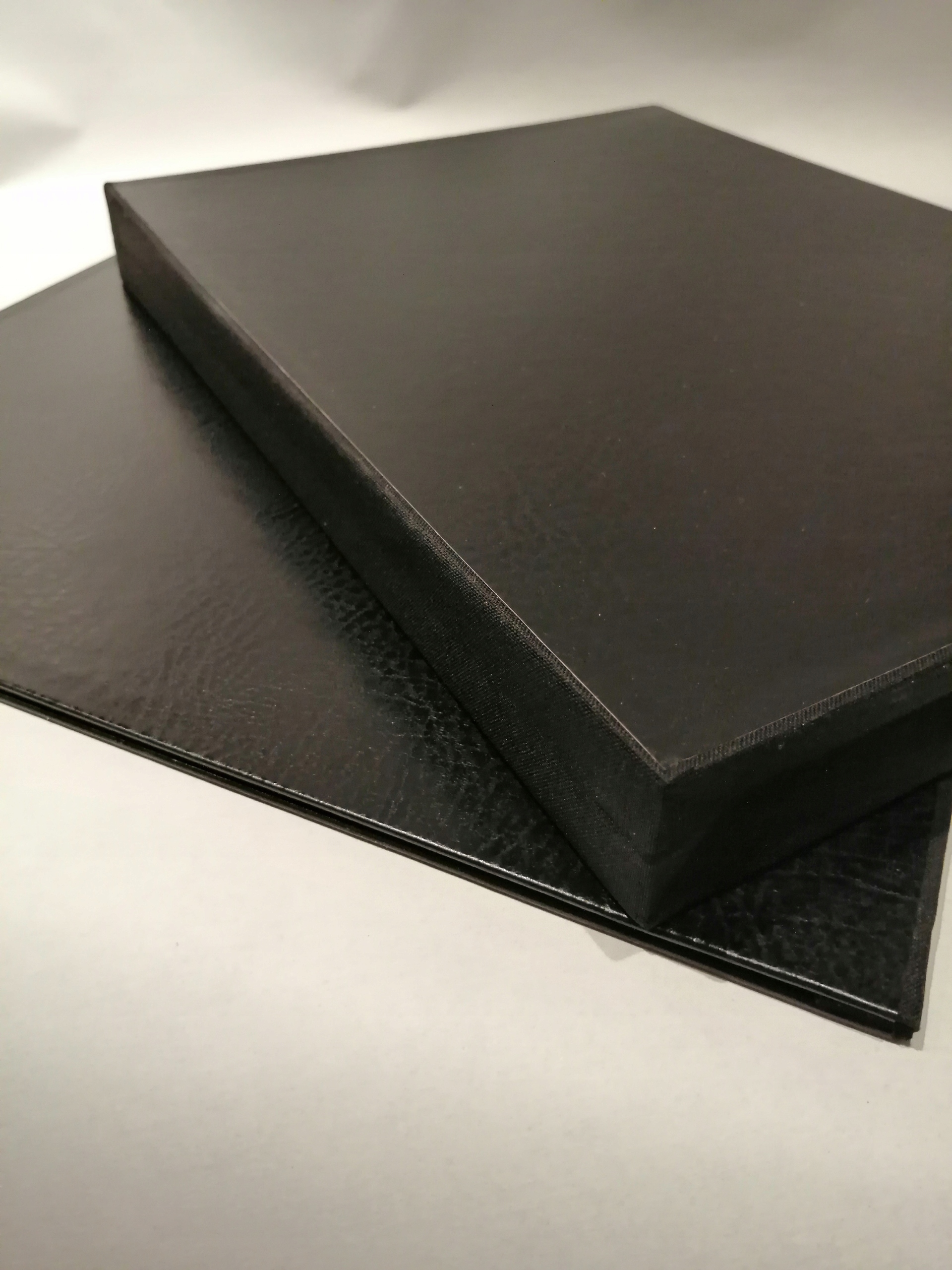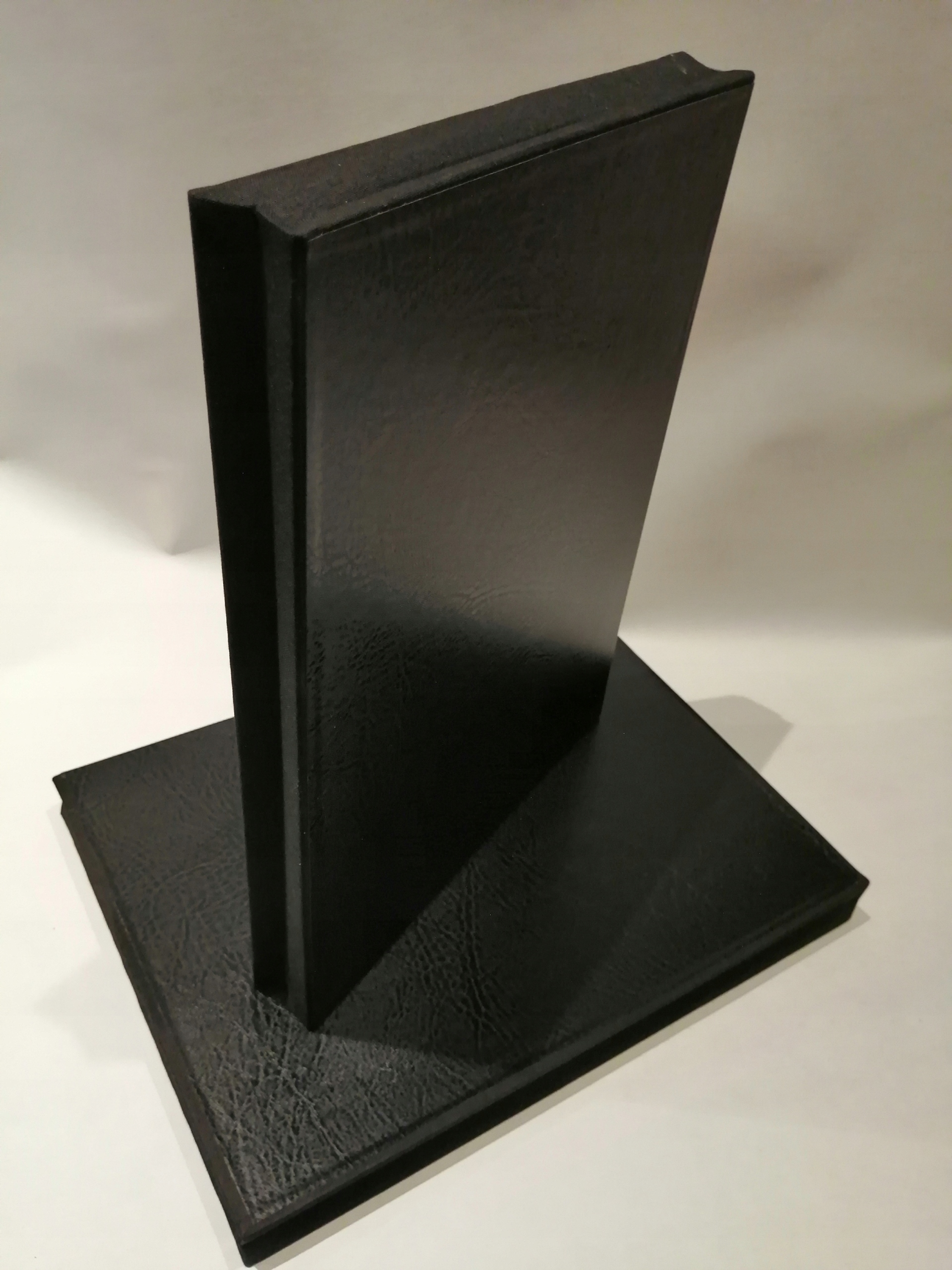 Конструкция - плотный картон с наклеенной итальянской переплётной тканью. Боковины покрыты шпоном ПРЕМИУМ с текстурой кожи.