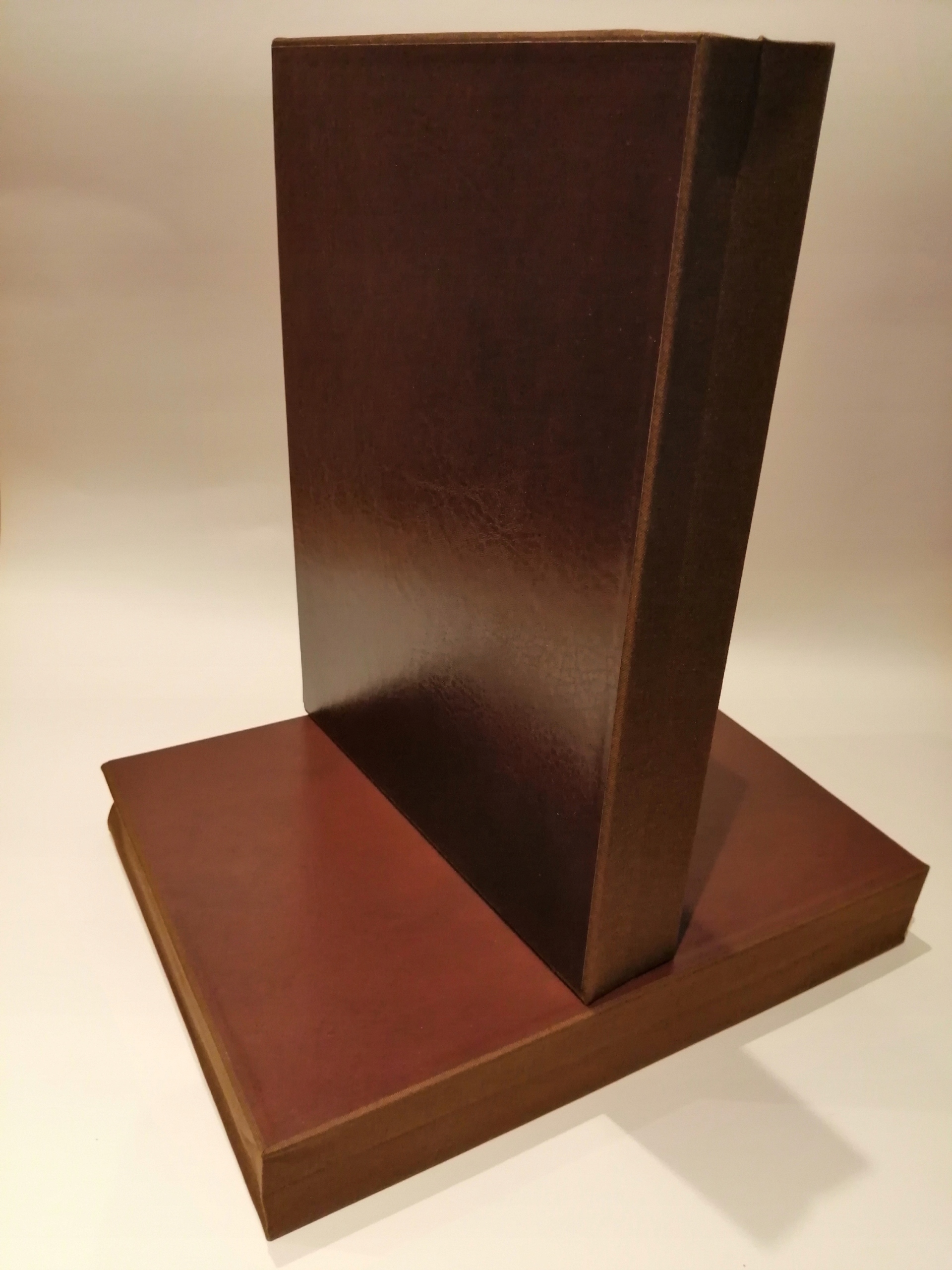 Конструкция - плотный картон с наклеенной итальянской переплётной тканью. Боковины покрыты шпоном ПРЕМИУМ с текстурой кожи.