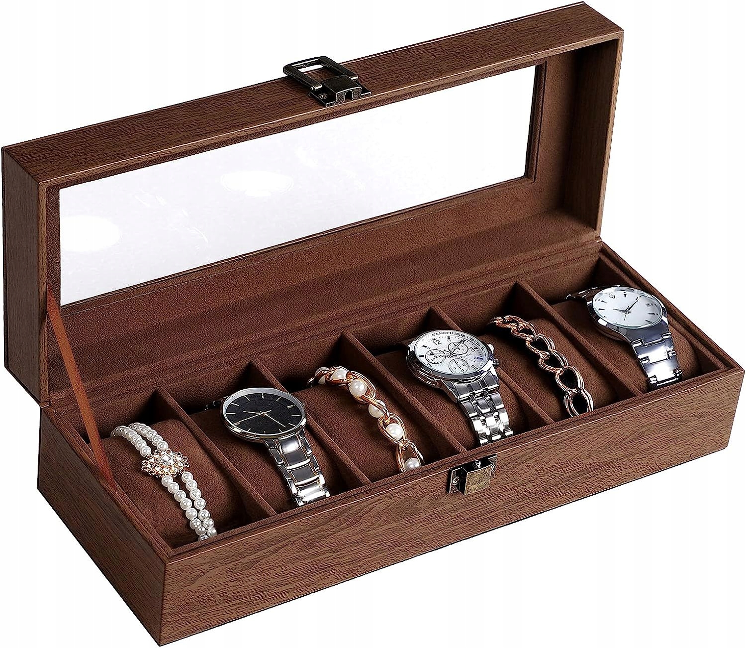 - Эта деревянная коробка для часов с 6 отделениями и стеклянной крышкой позволяет хранить ваши часы в порядке