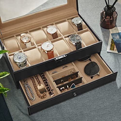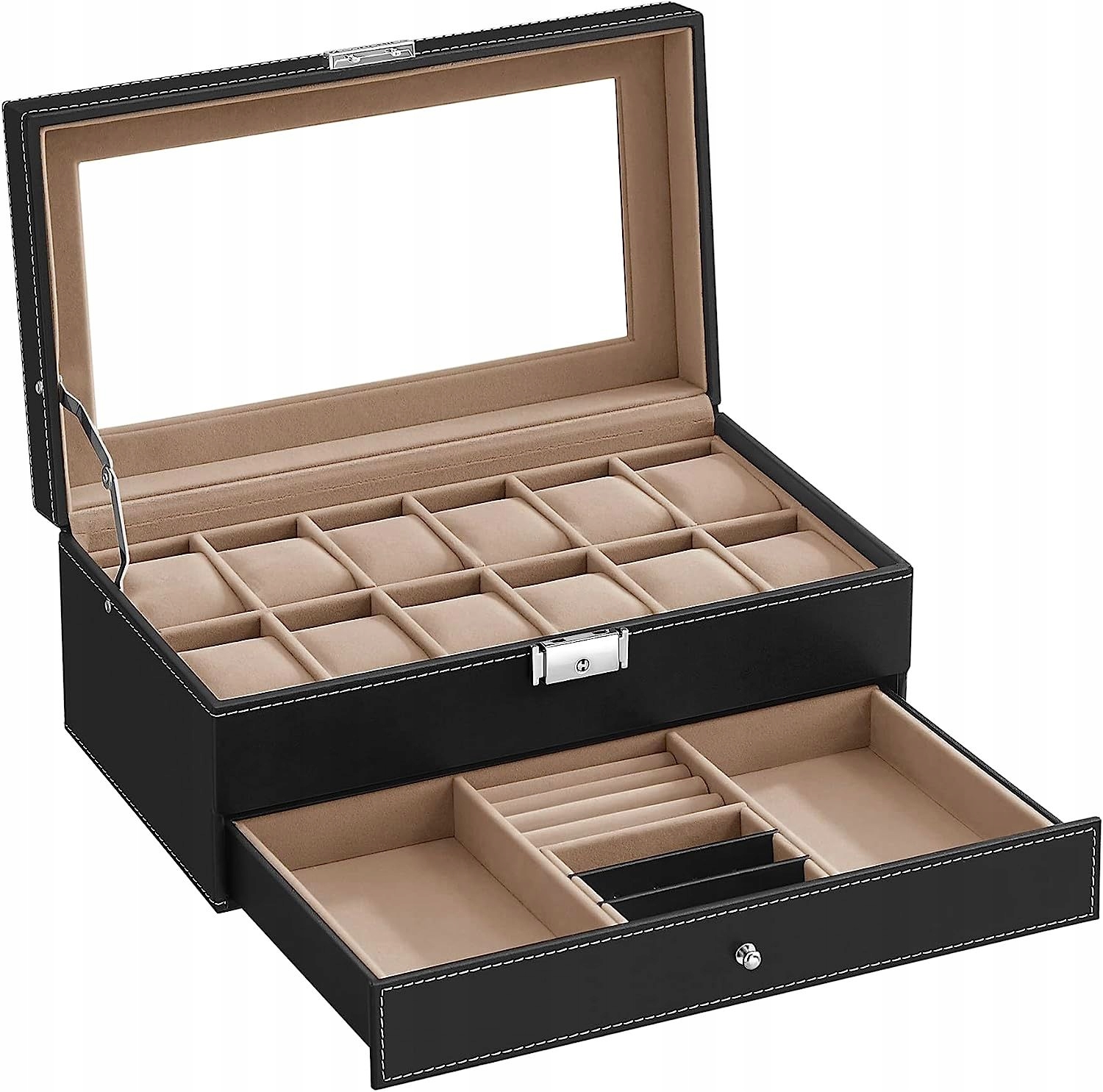 ✔️ Практичное разделение - 2 уровня. На первом уровне расположены 12 отделений для 12 часов, которые удерживаются мягкими подушечками для часов.