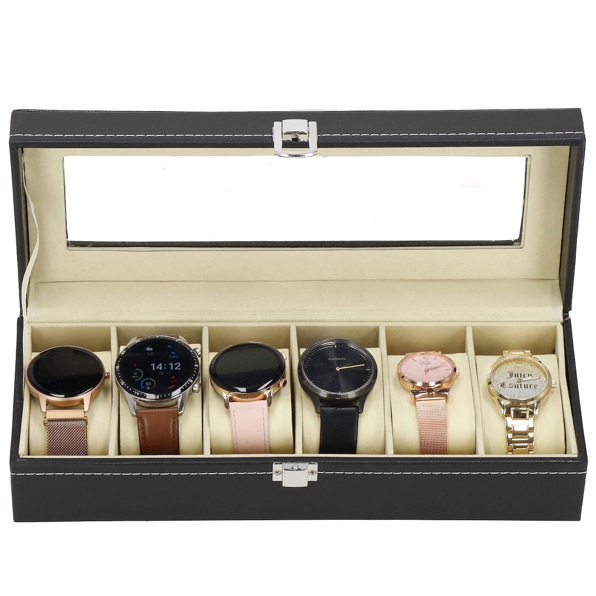 Если у вас недостаточно часов, чтобы заполнить внутреннюю часть футляра, вы можете снять подушечки, соответствующие форме часов и браслетов, и использовать их. в качестве отделений для других аксессуаров – запонок, колец, сережек или подвесок.