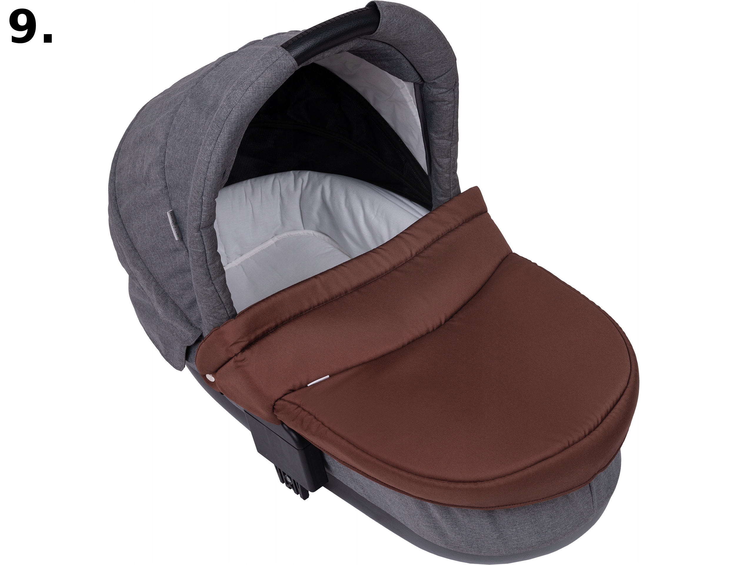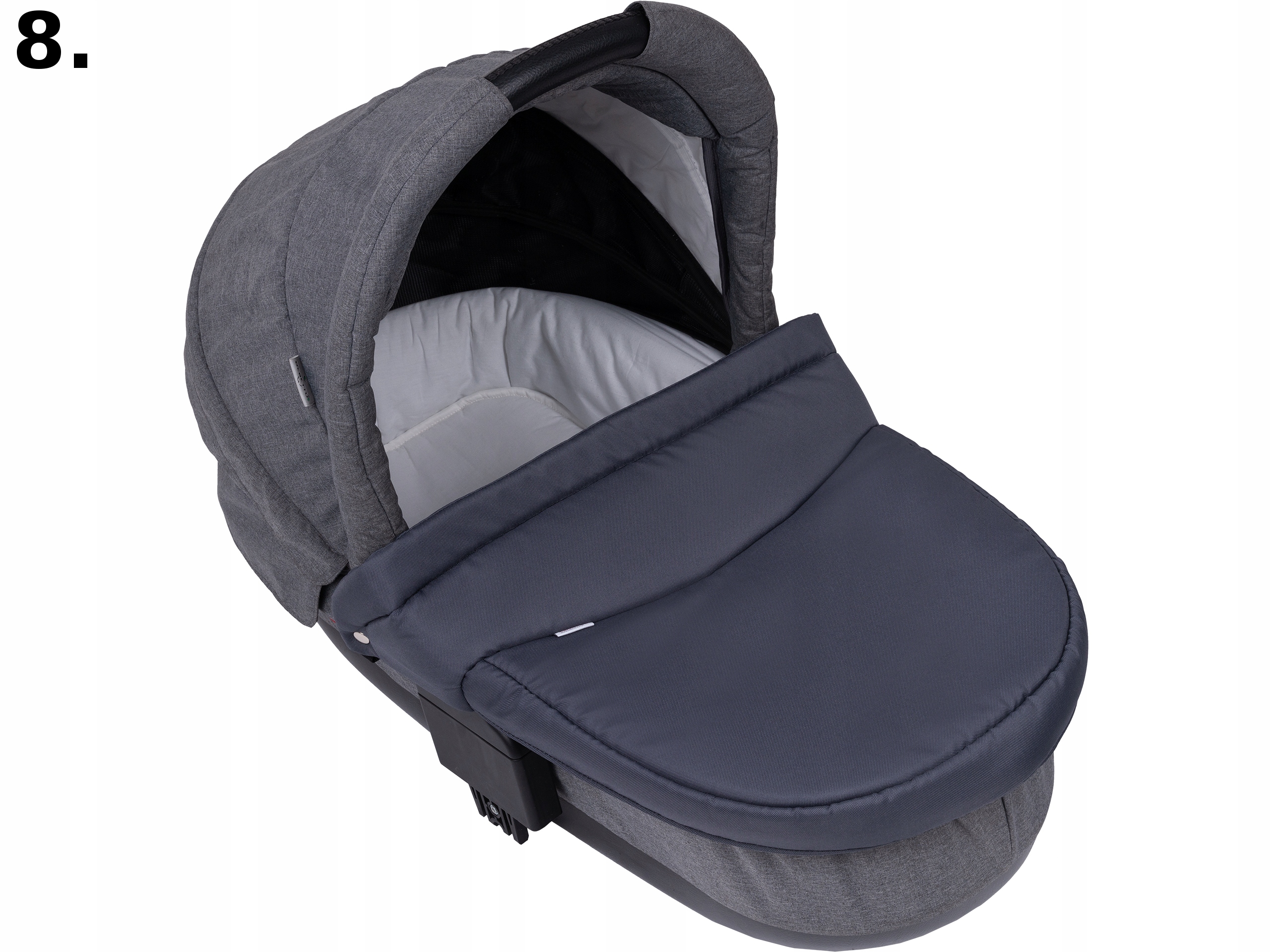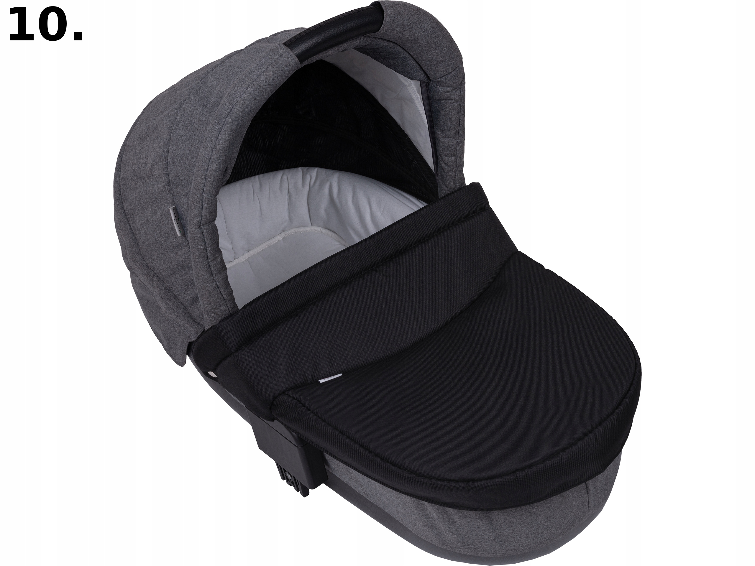 Универсальный чехол изготовлен из пропитанного материала, используемого для производства детских колясок, внутри наполнен поролоном, придающим жесткость, благодаря чему чехол идеально подходит к любой гондоле, дно отделано черной подкладкой