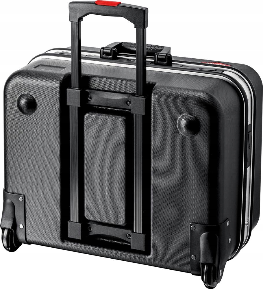 Изготовление: изготовлено из ударопрочного АБС-пластика, алюминиевая рама по всему периметру со стационарно установленной центральной стенкой, которую можно оборудовать с обеих сторон. Съемный карман для документов в крышке, 2 панели для инструментов из грязеотталкивающего двухслойного полипропилена с 13 карманами и петлевыми ручками. Нижний контейнер высотой 58 мм навесной, свободно разделяемый, с крышкой и 13 отделениями, крепящимися на кнопке. Нижний контейнер и крышку можно открывать независимо друг от друга. Устойчив во всех открытых положениях благодаря защелкивающимся ручкам крышки с двусторонним шарнирным механизмом. С телескопической ручкой, 2 колесами, 4 ключевыми замками, 1 кодовым замком и полем для надписи.